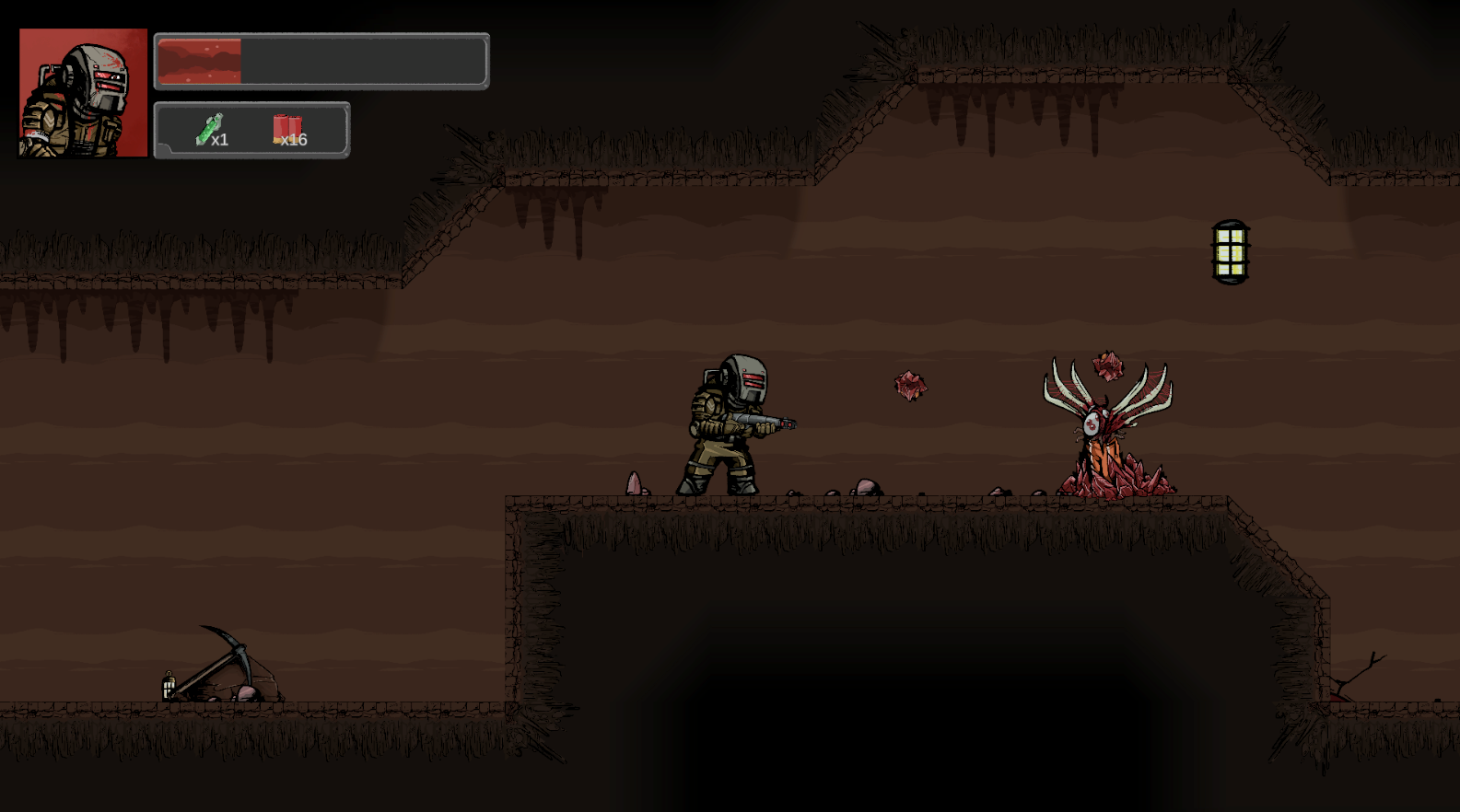 RE:MEND is a Metroidvania game with a cosmic horror/suspense theme, where you explore the underground map of the mines inside the Rigid Peak mountain to try to understand what happened in this facility while searching for survivors and files of vital importance to your mission.